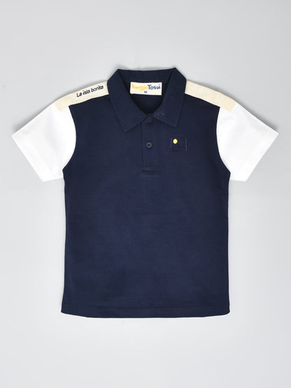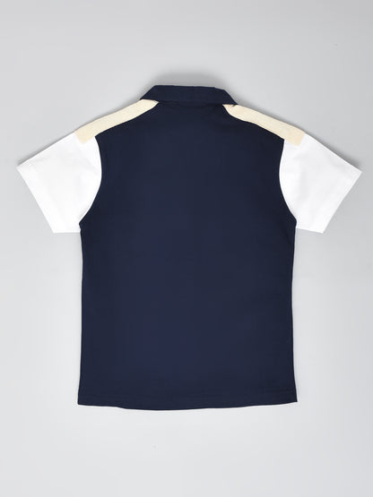 Navy blue colored Cotton T-Shirt for the casual outing. Comes in Colorblock design with White sleeves