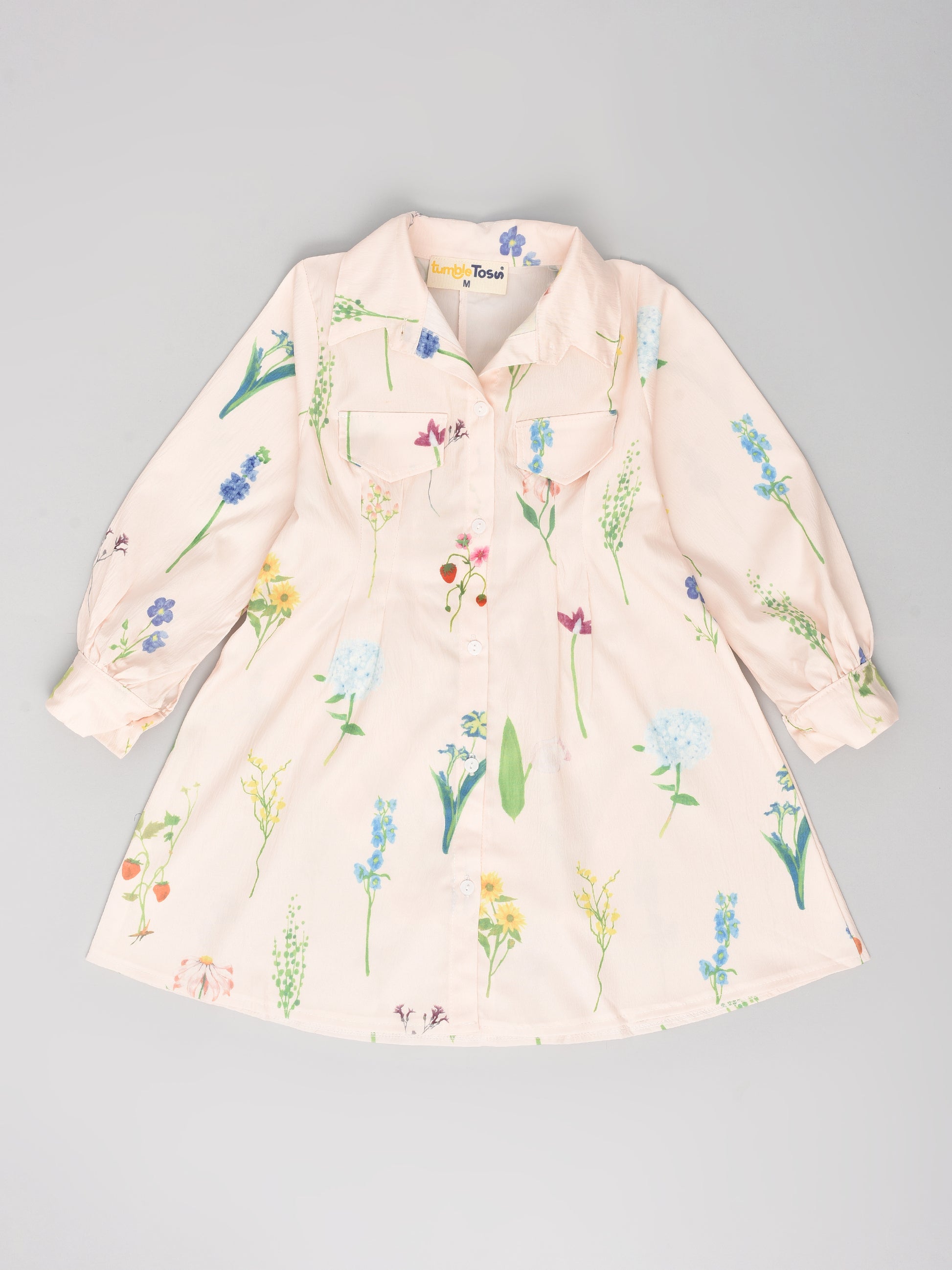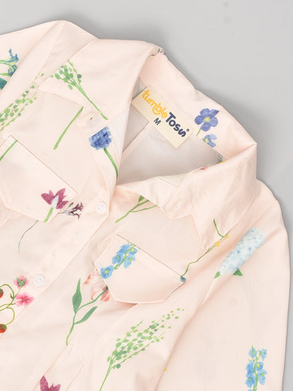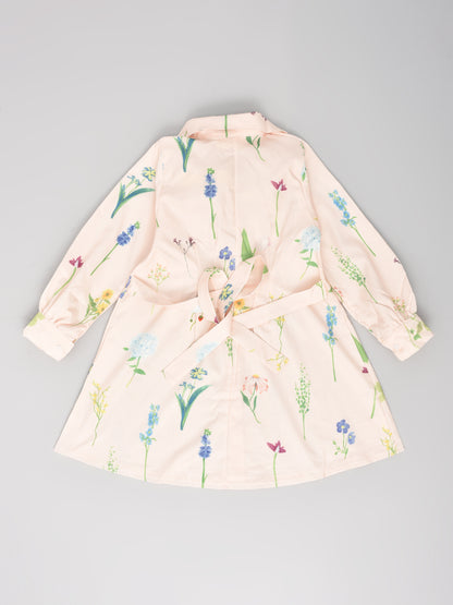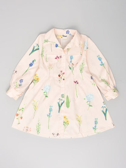 Peach Knee Length Dress with Floral Prints!