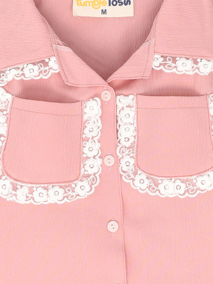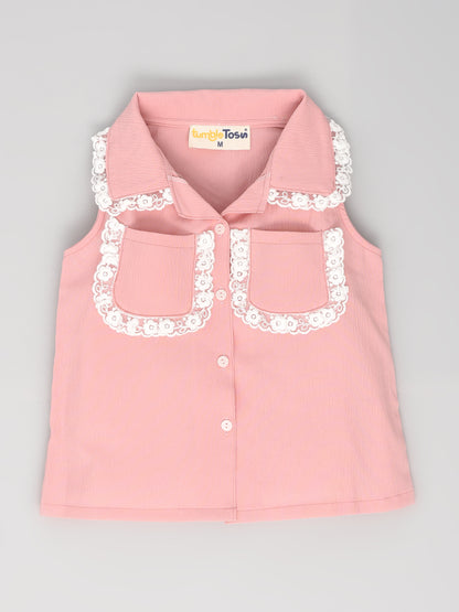 Pink Coord set, Sleeveless and full pants with lace pockets.