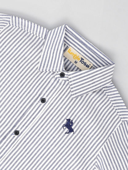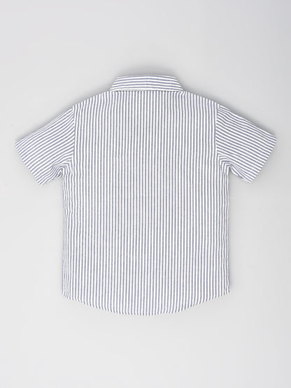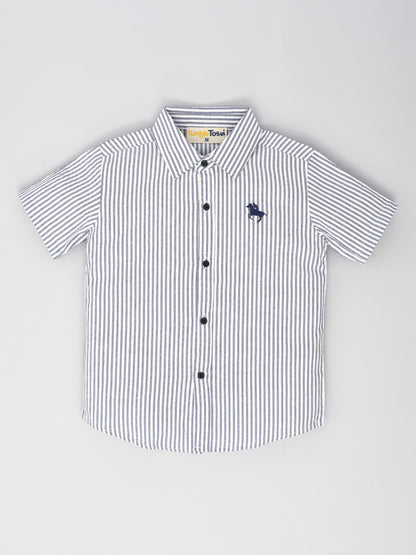 Casual Cotton White & Grey Striped Shirt