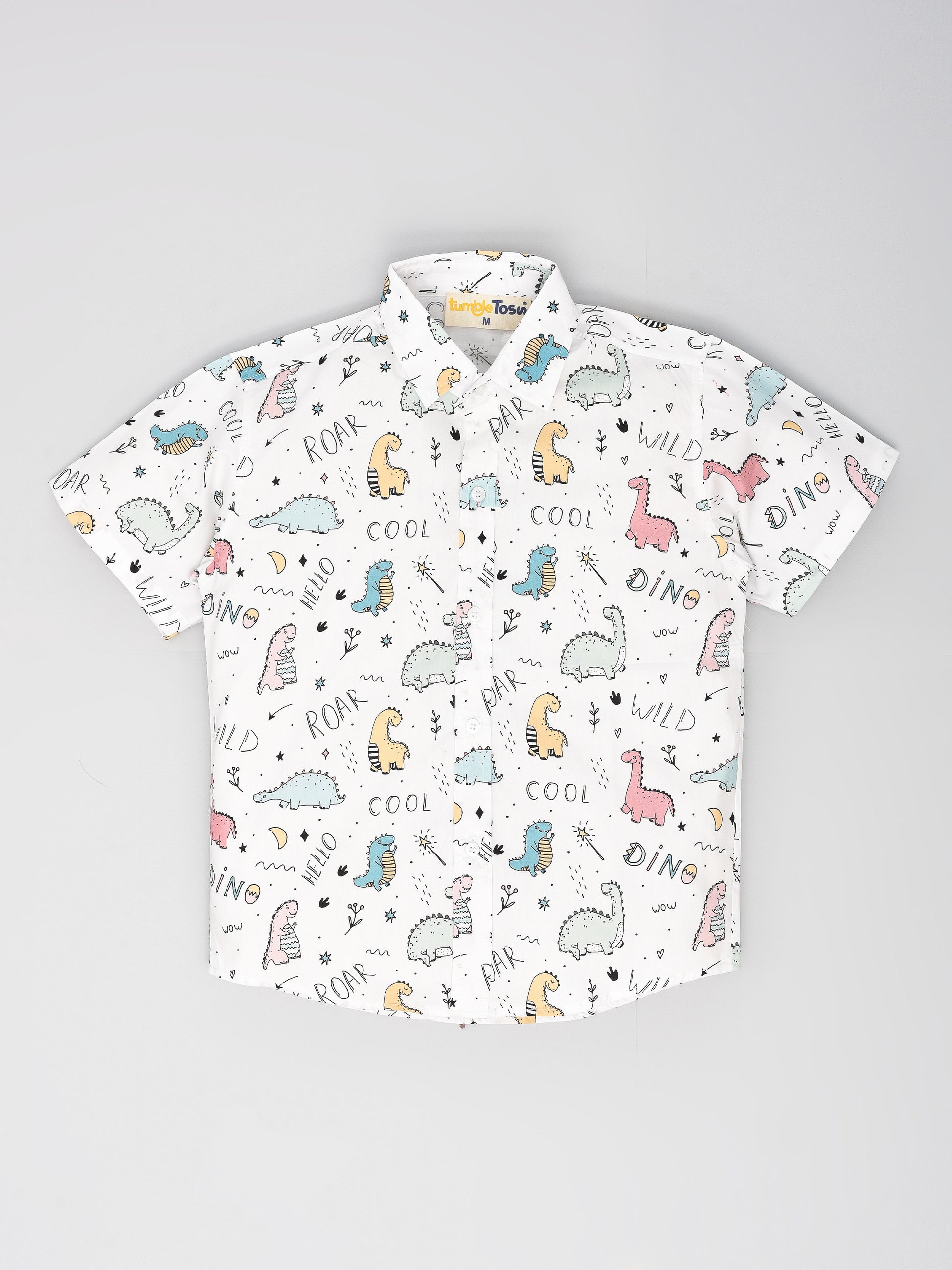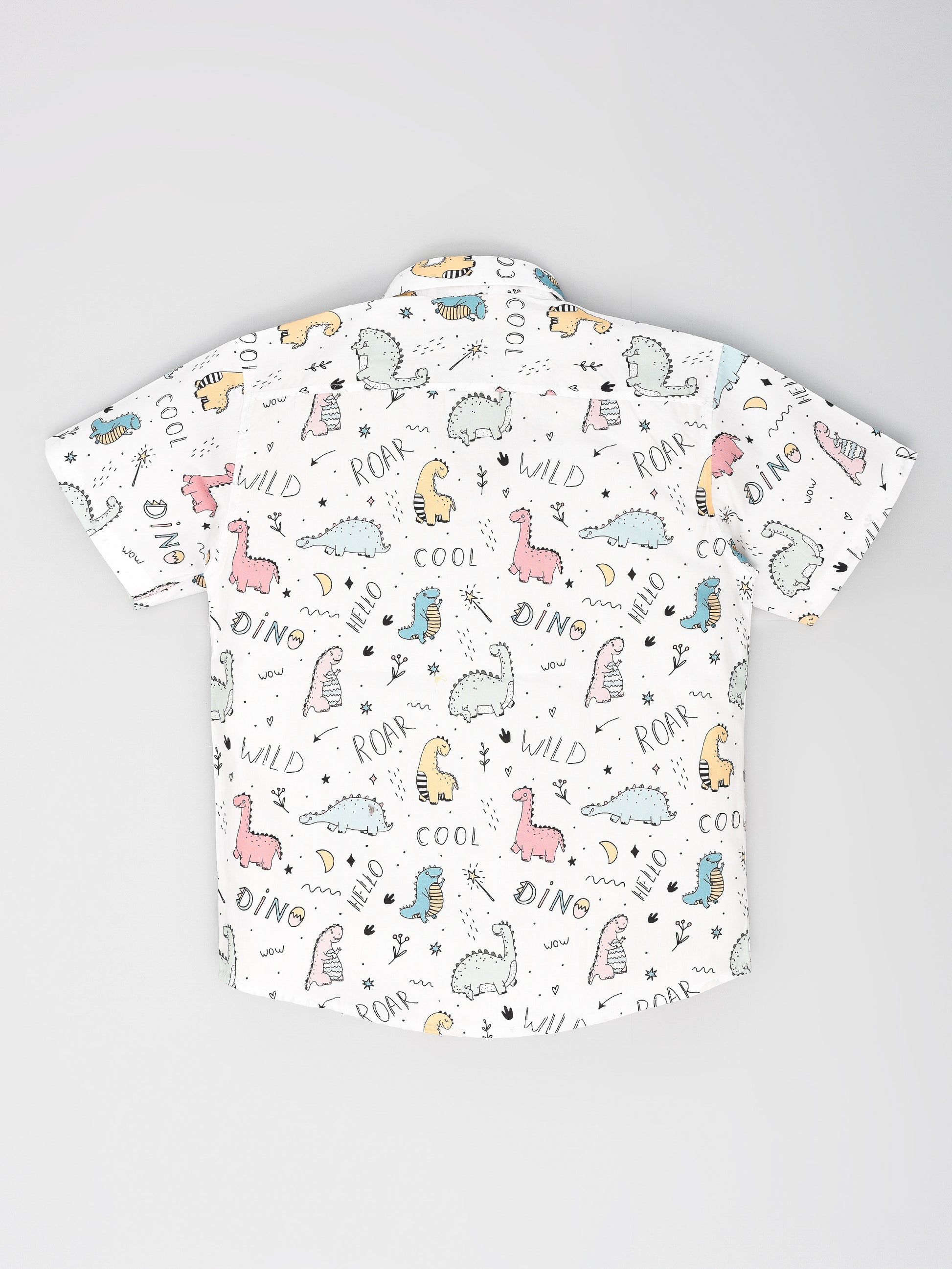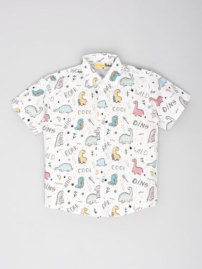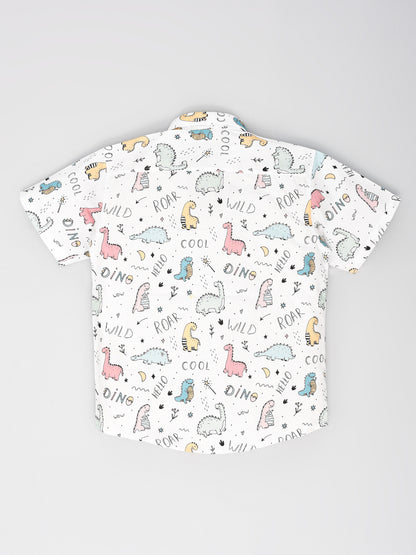 White Dino Printed Half Sleeves Shirt