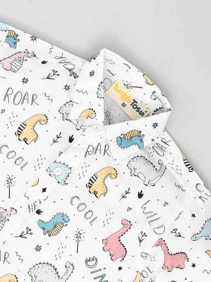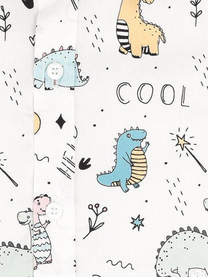White Dino Printed Shirt