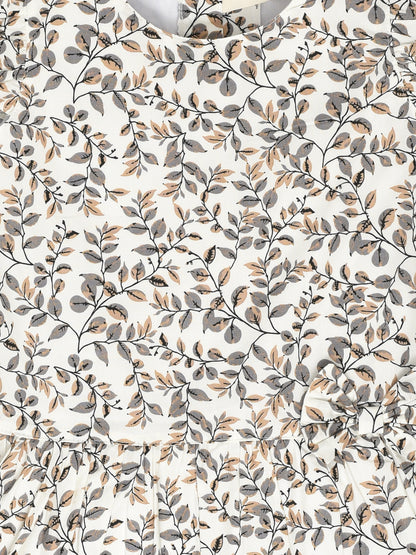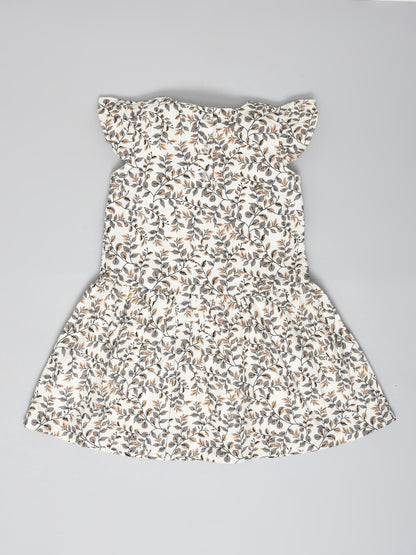 White Dress with Gray Printed Leaves